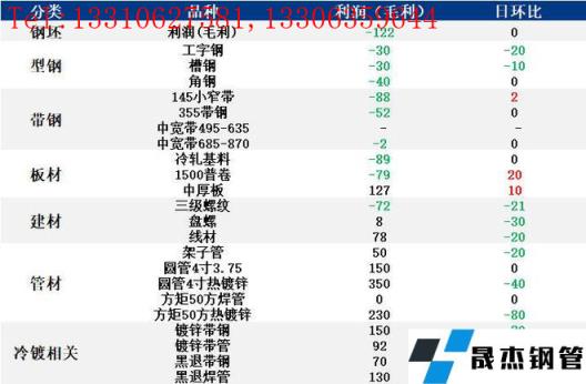 表:5月30日唐山鋼市主要品種利潤一覽(單位:元/噸)