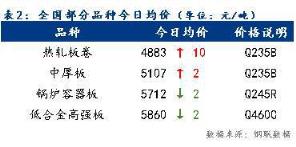 今日全國部分品種均價上漲,板卷價差進一步收縮。