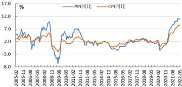 美國CPI同比漲幅在4月份小幅回落之后,5月份上升至8.6%,再創近40年來的新高。通脹形成的原因比較復雜,既有疫情之后貨幣超發、供應鏈受阻等因素的影響,也有此前貿易保護播下的種子,還有今年烏克蘭危機導致的能源和糧食的供應缺口。近期美國財長耶倫表示,美國的食品和能源價格還有進一步上漲的風險。