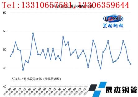 云商平臺統計發布的2022年6月份厚壁無縫鋼管流通業PMI總指數為46.1%,比上月下降1.1個百分點,在收縮區間內持續下滑。從分類指數看,構成厚壁無縫鋼管流通業