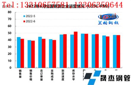 從先行指數來看,2022年6月份厚壁無縫鋼管流通業采購意愿指數為47.1%,較上月下降0.1個百分點;走勢判斷指數為45.2%,較上月下降1.4個百分點,兩個先行指數均在收縮區間內再次下滑,反映樣本企業對后期市場保持謹慎悲觀的態度。