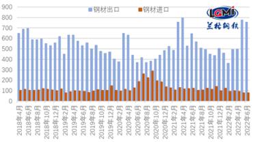 目前,主要出口國的熱軋板卷價差不大,獨聯體出口報價已經下穿我國報價,我國出口價格優勢減弱,由于國內厚壁鋼管市場供強需弱,企業出口動力有所增強,中物聯厚壁無縫鋼管物流專業委員會數據顯示,2022年6月,厚壁無縫鋼管業新出口訂單指數為47.1%,較上月回升6.2個百分點,但仍處于收縮區間。