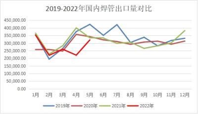 1-5月國內焊接無縫鋼管出口量同比下降14.60%