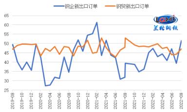 據中物聯厚壁無縫鋼管物流專業委員會數據顯示,2022年8月,厚壁無縫鋼管生產企業新出口訂單指數為51.6%,較上月明顯回升12.2個百分點。云商平臺統計發布的2022年8月份厚壁無縫鋼管流通業PMI數據顯示,8月份厚壁無縫鋼管貿易企業新出口訂單指數為47.1%,雖仍在收縮區間運行,但較上月回升了2.9個百分點。